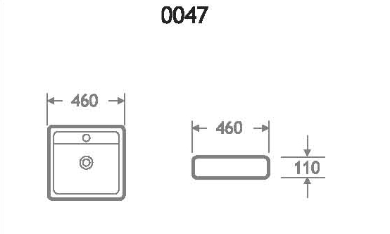 LAVABO SOBRE-ENCIMERA FABRICADO EN PORCELANA SANITARIA, CUADRADO 460X460XALT.110 COLOR BLANCO.