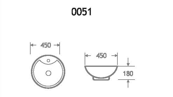 LAVABO SOBREENCIMERA FABRICADO EN PORCELANA SANITARIA, CIRCULAR DIAM.450mm. ALT.180mm. EN COLOR BLANCO.