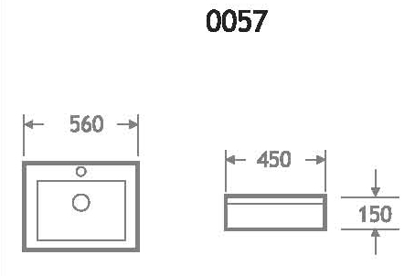 LAVABO SOBREENCIMERA FABRICADO EN PORCELANA DE ANCH.560mm. X FOND.450mm. X ALT.150mm. EN COLOR BLANCO.